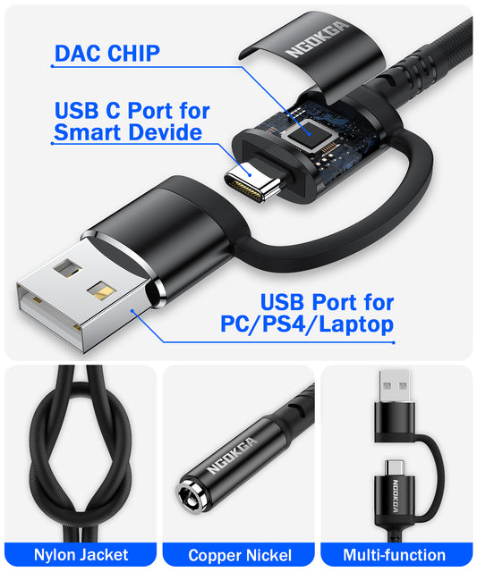 USB to 3.5mm Jack Audio Adapter USB C to 3.5mm Female AUX Adapter USB A Sound Card TRRS 4 Pole for Headphone Speaker PS4 PS5 PC Compatible with Pixel 5 4 3 XL Samsung Galaxy S21