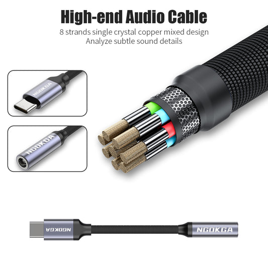 USB C to 3.5mm Audio Adapter Type C to Aux Female Headphone Jack Hi-Res DAC Cable Compatible with Pixel 7 Pro 6 6a 5 4 3 2 XL Samsung Galaxy S23 S22 S21 S20 Ultra Z S A Note 20 10 S10